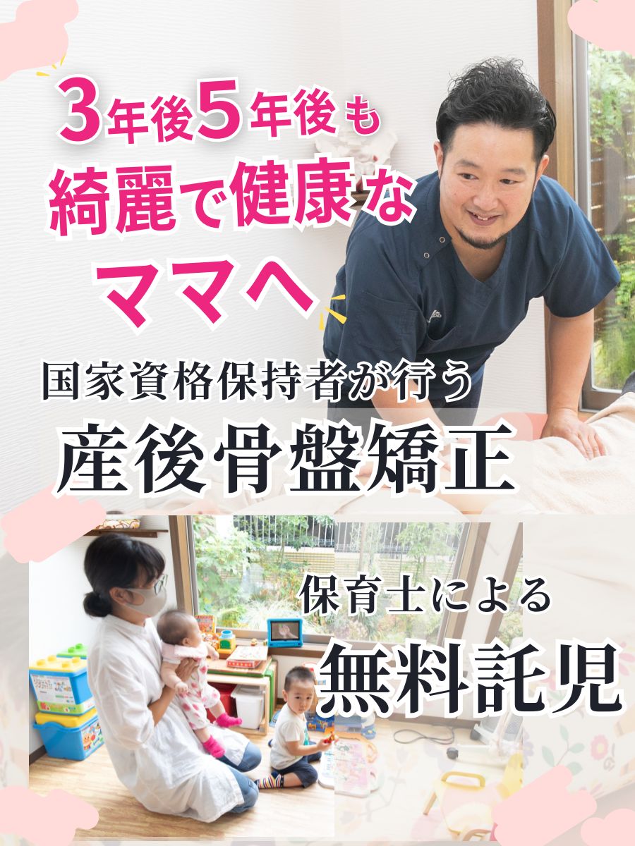 出産後1年位までが骨盤を整えやすい期間です。なのでこの時期は矯正をおすすめします。